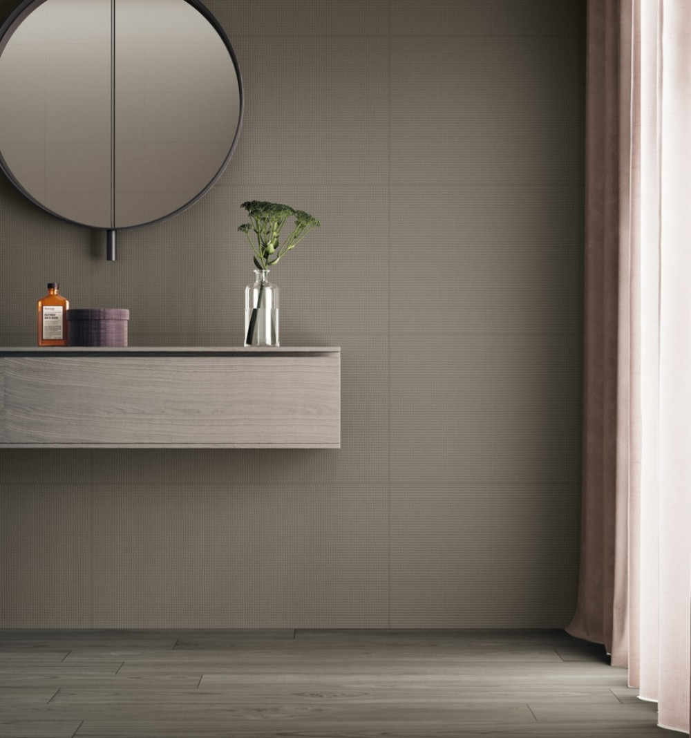 Плитка Italon из коллекции Room детально воспроизводит прожилки древесины черешни и графику натурального камня. Прекрасным дополнением для них служит микрофактурная настенная плитка, вдохновленная скандинавским текстилем.