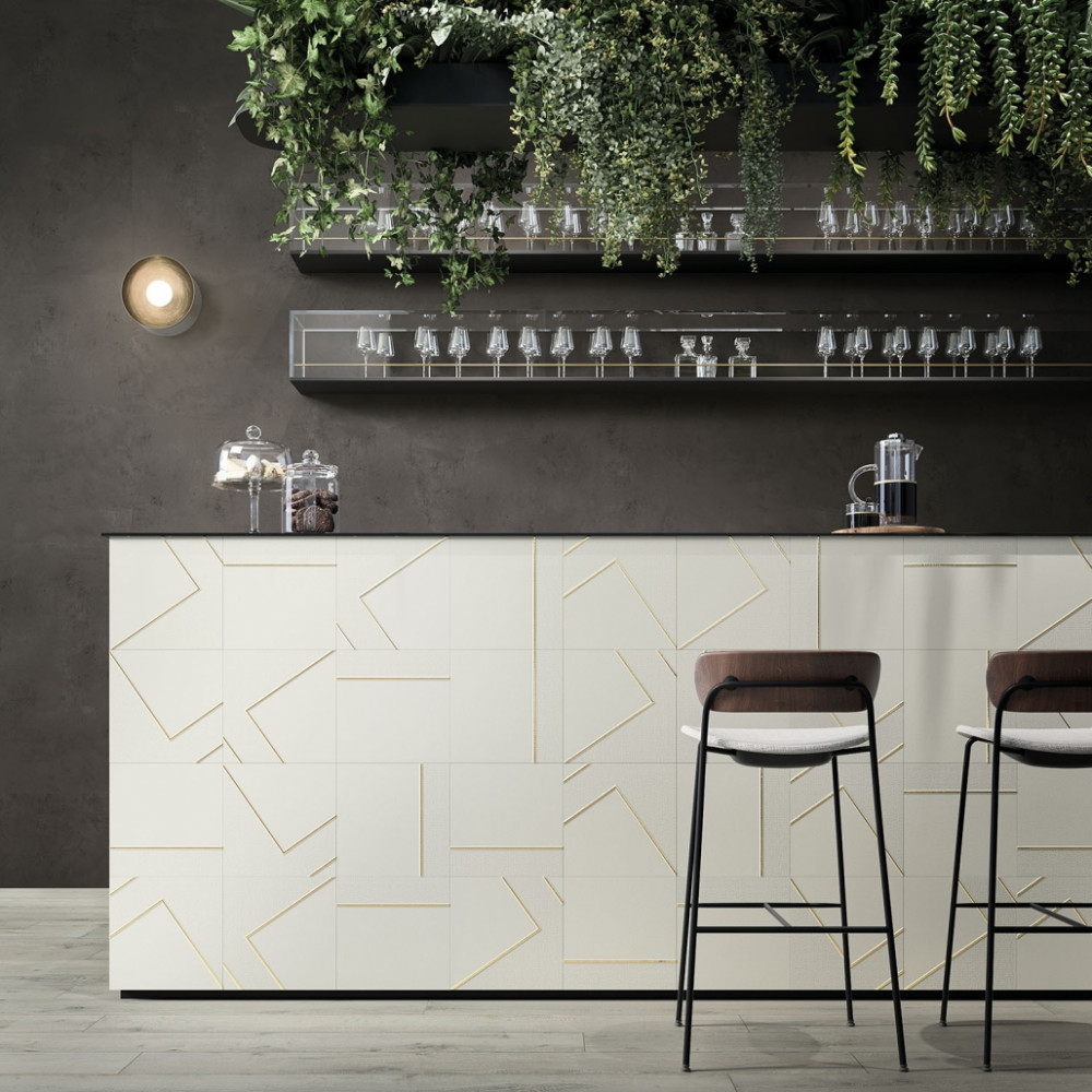 Коллекцию также отличает широкая гамма декоров. При помощи Брик Мультиколор получится воплотить в жизнь интересные творческие идеи. Декор Плэй представлен в четырех вариантах, что позволяет использовать различные схемы укладки. Татами имитирует деревянные рейки. А добавить динамизма в помещение можно при помощи геометрических мозаик.