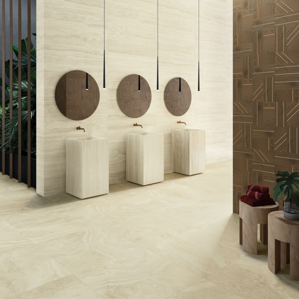 Новая коллекция Wonderful Life от Italon объединяет в себе керамогранит, имитирующий травертин из Раполано, и плитку под брашированный дуб. Выразительные прожилки, мягкая текстура и уникальные цветовые переходы передают все очарование природных аналогов этих материалов. Вместе они представляет собой идеальную основу для реализации уникальных дизайнерских решений.