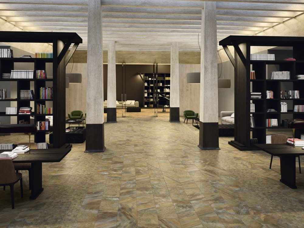 Magnetique – коллекция, гармонично сочетающая в себе крепость кварцита и великолепную суть мрамора. Она придает современным архитектурным пространствам необыкновенный и шикарный рустикальный стиль.