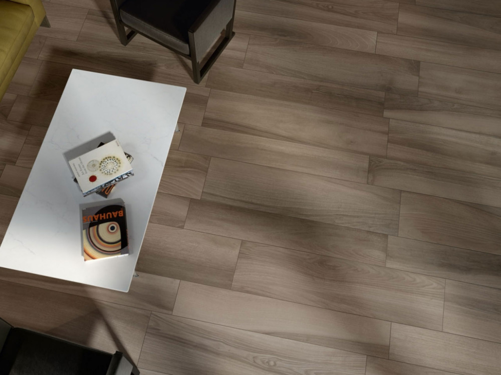 Коллекция Maison воспроизводит в керамограните элегантный вид промасленной древесины европейского ореха с ее необычайным, ярко выраженным рисунком. Бархатистая поверхность плиток характеризуется мягкой цветовой неоднородностью и крупными натуральными волокнами.