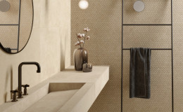Плитка Italon из коллекции Room детально воспроизводит прожилки древесины черешни и графику натурального камня. Прекрасным дополнением для них служит микрофактурная настенная плитка, вдохновленная скандинавским текстилем.