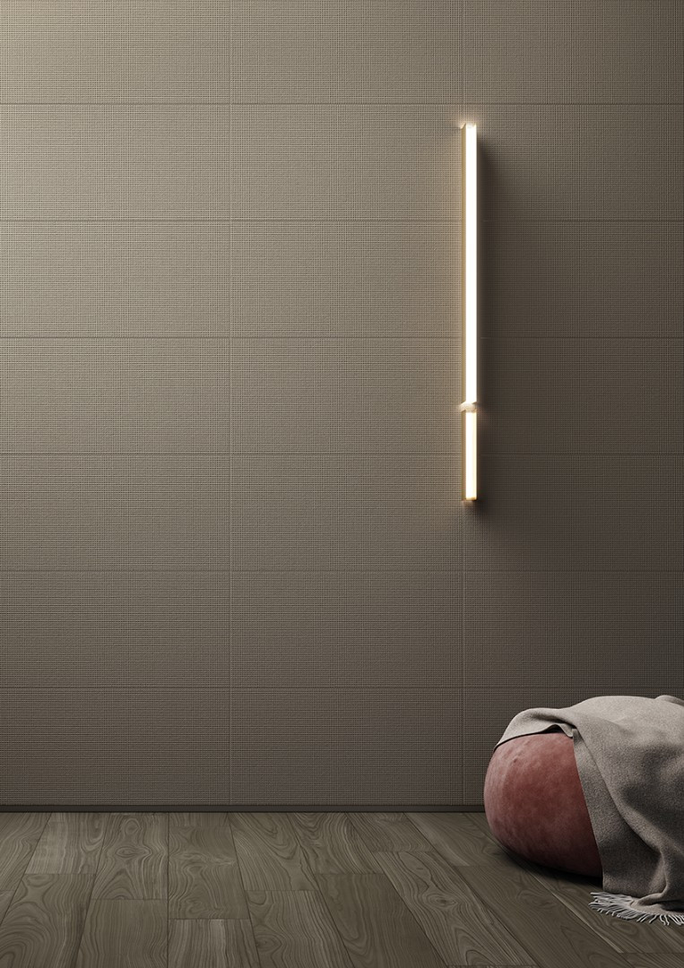 Плитка Italon из коллекции Room детально воспроизводит прожилки древесины черешни и графику натурального камня. Прекрасным дополнением для них служит микрофактурная настенная плитка, вдохновленная скандинавским текстилем.